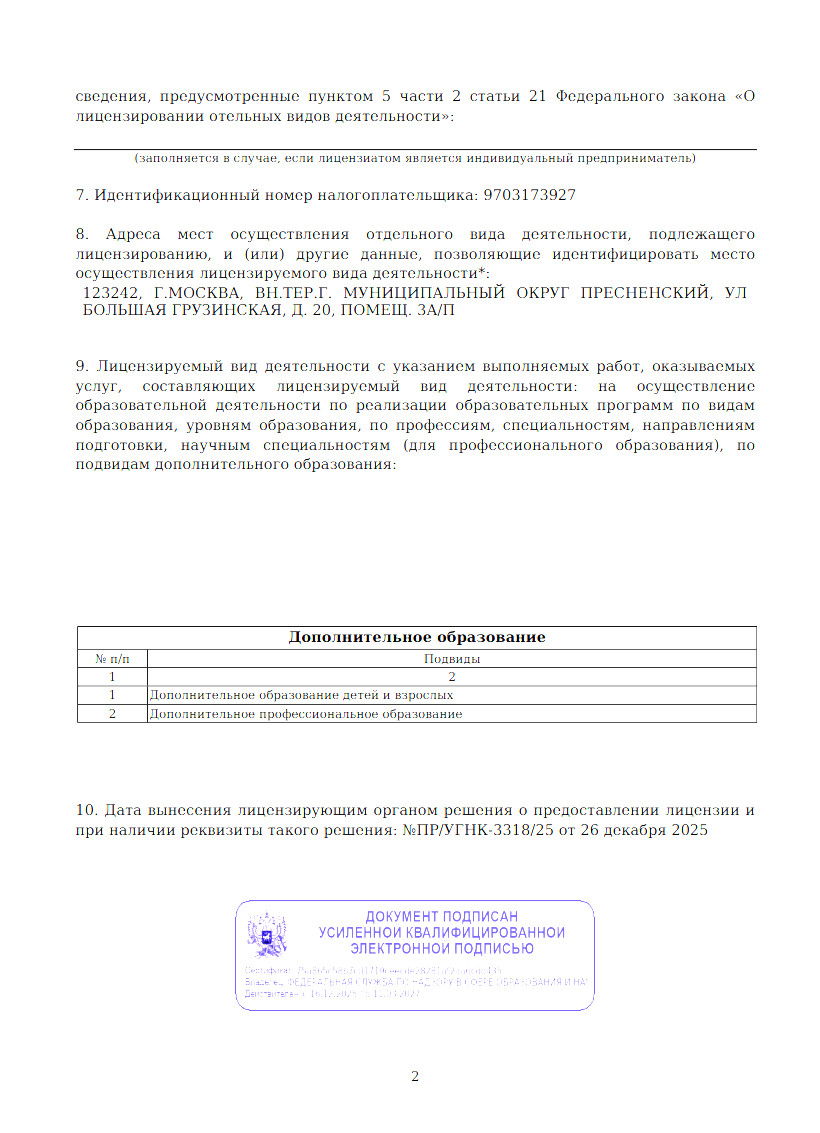 Регистрационный номер образовательной лицензии: № Л035-01298-77/04097855